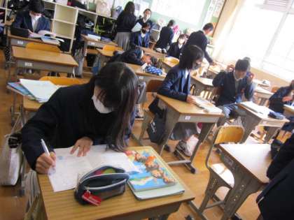 昼休みの1年生。自由に過ごしています。外で遊ぶ人。先生に質問をしている人。一人で勉強している人。どれもいいですね。しかし、テストも迫っているので、少し勉強に時間を割くことも必要なことかもしれません。結果を出すためには「一人になる勇気」「孤独な戦い」を時として選べる人になってください。まずは月曜日の学習確認プログラム、そこに意識を向けましょう。