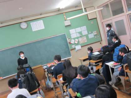 朝からすごい雨でした。そして思ったより暖かい。3月ですね。風も強く、体育館での体育の授業中、換気のために窓を開けていると、雨が入ってくるほどでした。写真は、2月末で転出となった生徒が、最後に登校した日の様子です。転出はやむを得ないことですが、やはり寂しいですね。次の学校でも頑張ってくれることを心から期待しています。確実に春が近づいています。