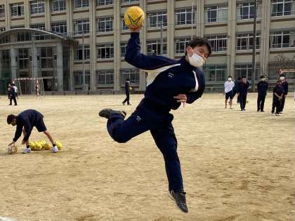 あちらこちらから「ムズっ」「あー」といったなんとも不満気な声が聞こえます。それでいいのです。それでこそおもしろいのです。しかし、自分自身で何か「変化」を生み出さないといけません。人間は、変化を嫌います。たとえうまくなりたい、できるようになりたいと思っていても、どこか変化しない自分に安心してしまう生き物です。学校という場は変化する場所、変化できる場所です。変化を恐れずに、体育だけでなく、いろいろなことに取り組んでほしいと思います。