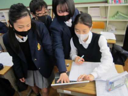 以前より主体的に取り組める学習内容に数多く挑戦している社会科の授業。今日もがんばっていました。既習内容の定着をねらいとして「かるたづくり」に挑戦です。かるたの読み札と取り札を丁寧に作成していました。取り札のイラストは結構うまい。必要に応じて、教科書やタブレット端末も使用していました。なかなかのできばえになっていました。自分が作成したかるたは友達も使います。自分だけでなく、他者とのかかわりを意識しながらの学習は、深い学びにつながります。これからもがんばっていきましょう。