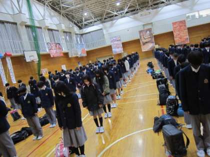 生きたくても生きられなかった人の命。約22000もの命が奪われました。今日で東日本大震災から10年となります。簡単に10年といいますが、いまだに2525人の方が行方不明(警察庁3月1日発表)、身元が特定できていない方もたくさんいらっしゃるという現実。震災があった約1年後に宮城県石巻市に訪問する機会がありました。この世とは思えない惨状。何もかもが奪われていました。今ここに生きているということ自体がどれだけ尊いことなのかを再確認させられました。私たちは、生きたくても生きられなかった人の命の分まで頑張って生きる責務があると思います。何気ない毎日がやってくるのは生きているから。花山中学校の生徒であるのは生きているから。今確かにここに存在する自分の命を大事にしなければいけません。1年生の生徒にとっては、10年前ですから、リアルタイムでの東日本大震災は記憶にないのかもしれません。しかし、それではいけません。大変なことが起こった日であるということをしっかりと心に刻み、命を大事にするということに誓いを立てる日にならないといけないのです。1年生では、6限終了後に体育館に集まり、以上のような話をした後、生徒と教職員一同で黙祷を捧げました。東日本大震災でお亡くなりになられたすべての方々のご冥福をお祈り申し上げます。