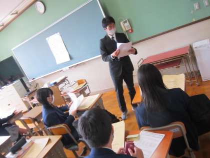 2年2組の学級開きの様子です。2組担任は今年度より花山中学校に来ていただいた理科の先生。先生も生徒も互いに緊張した様子でしたが、次第に打ち解け、学級開き後半には元気な声が響いていました。学級通信のタイトルは「Colorful」。1人1人が持つ長所や個性が、クラスのため、学年のために、美しく輝いてくれることを楽しみにしています。