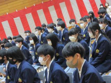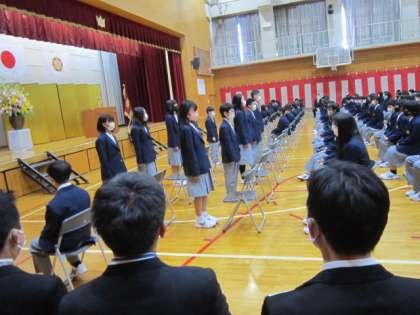新入生入場後、新入生呼名、学校長式辞と続きました。学校長からは、花山中学校における3年間で身につけてほしい力について示され、それを新入生もしっかり受け止めた様子でした。