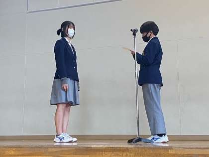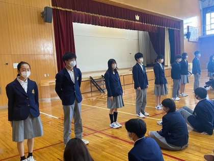 委員会に所属した生徒は全校生徒の前で名前を呼ばれて,元気よく返事をしていました。