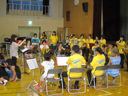 8月27日(土)陵ケ岡小学校の体育館で、地域生徒指導連絡協議会(地生連)主催の『吹奏楽とふれあいの夕べ』が開催されました。本校の吹奏楽部を中心に小学校の金管バンドや和太鼓演奏、PTAコーラス、地域の女性会や児童館の子どもたちの発表が続きました。