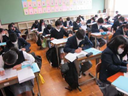 連休前にアップしようと思っていましたが、今日のアップになってしまいました。30日の金曜日、テスト範囲票とPDCAシートに取り組みました。1年生のときよりも何をどう頑張るか。3つの視点を持ちましょう。1つ目は「続けること」。同じように続けていれば、成果につながる行動はしっかり続けましょう。2つ目は「増やすこと」。1年生のときよりも増やさなければいけないもの。それは時間。解く量。覚える量。自分は何を増やさなければならないのかを把握し、必ず増やしましょう。3つ目は「やめること」。2年生になってやめようと思うことを決め、それはもうやめましょう。勉強の邪魔になるものは積極的にやめましょう。絶対にやめましょう。この3つを頑張れば、結果は必ずついてきます。
