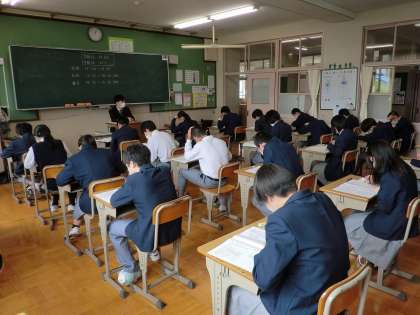 進路実現に向けて大きな意味のある学習確認プログラムです。定期考査の学習もありますが,明日の理科・英語も頑張ってください!