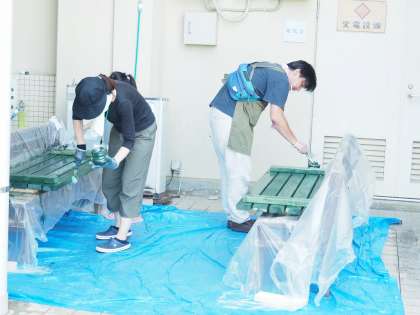 先週の土・日曜日と大変,暑い中でしたが,朝からPTA役員の皆様が,グランドや花壇の草引きなどの校内清掃と花壇の上にかぶせて椅子にもなるようにとベンチ用板の制作と色塗りをしていただきました。暑い中本当にありがとうございます。大切に使わせていただきます。