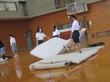 2年生の体育は、奇数クラスが陸上競技(ハードル走)、偶数クラスが器械運動(跳び箱運動)に取り組んできましたが、本日で最後、来週からは入れ替わりとなります。器械運動(跳び箱運動)では、本日、取り組んできた技の発表会(技能テスト)を行いました。「失敗したらどうしよう」この気持ちは誰にでもあることですし、すごくその気持ちは分かります。しかし、失敗を恐れすぎることは自分の成長を止めてしまうことにもなります。そこにはしっかり打ち克ってほしいと思います。打ち克てた人は相当な気持ちの変化があったはずです。また、最後の授業で技能の評価がなされることは以前から分かっていたことです。体調管理等、しっかり準備をして臨むことも大事ですね。