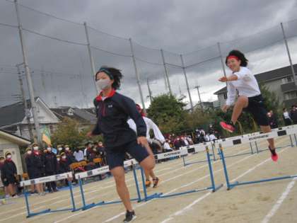 ハードルを2台跳び越えるという課題からはじまる障害走。障害走は、走るスピードよりも、課題をいかに乗り越えるか、意外と頭を使う部分が多いです。先日行った障害走の練習では、なんと、障害走に出場しない人も練習をしました。その意図は、頑張る姿や課題の越え方等を参考にすること。その意図は見事にはまり、障害走に出場しない人が色んなものを示してくれました。「障害走にエントリーすればよかった」というセリフも聞かれたくらいでした。がむしゃらに走ることも美しい。でも、頭を使って走ることもまた美しい姿でした。