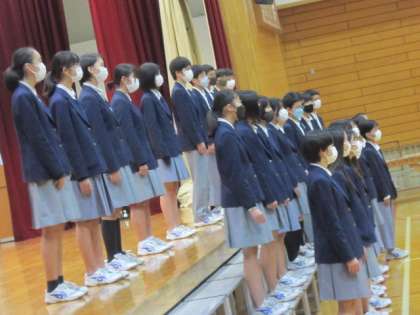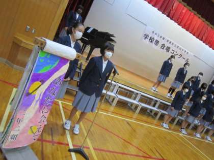 続いての登場は2組です。「あなたに会えて」を歌います。とても美しい歌、冒頭の一音から心に響く名曲です。この歌は、とにかく歌詞が素晴らしい。どの曲もそれは言えることですが、個人的に、群を抜いていると思います。「弱く小さな心、もがき苦しむ時も、大丈夫と優しい声、心の中に響いてる」。人は喜びよりも、苦しみの方を共有できるのだと思います。様々な困難に直面した時に、この歌詞のような関係をしっかり作っていけるクラスを目指してくださいね。