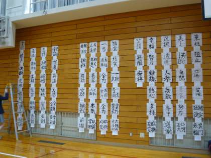学校祭(展示の部)に向けて,各教科・文科系部活・学年,係の生徒が準備をしてくれました。明日は,密を避けるため,展示会場である体育館を時差で巡ります。手作りの温かさが伝わる素晴らしい作品がたくさん飾られています。