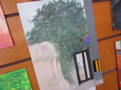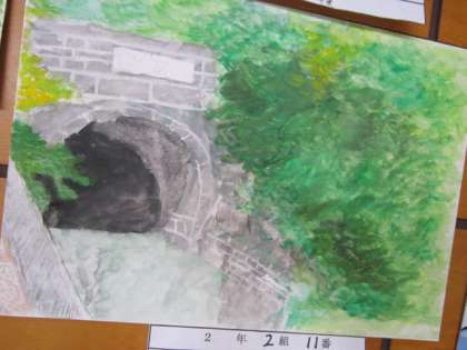 体育館の中には、様々な展示作品が並べられています。各教科、各学年、趣向を凝らした作品ばかりです。よくこれだけのものを作ったなと感心させられます。上手とか下手、そんな価値観で鑑賞しがちなのですが、それだけではいけません。作品を作った人の思い、創造力、心、いろんなものを感じ取ってほしいと思います。写真は、2年生の美術科の作品です。
