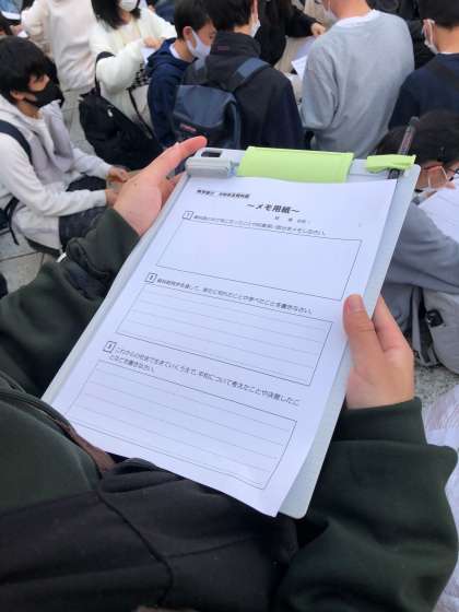 平和記念資料館での学習を終え,学んだ事をワークシートにまとめました。この後は,駅前にあるお店で夕食の「広島焼き」をいただきます。
