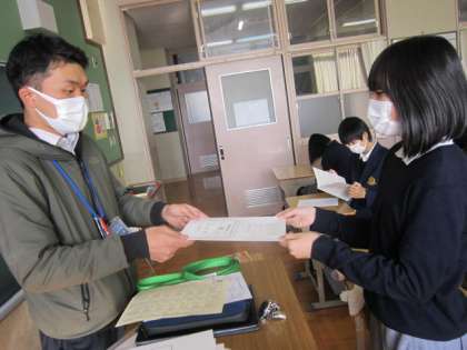 長かった2学期が終了しました。まだまだ暑かった8月末から思い出すと、つらかったこと、うれしかったこと、本当にいろいろありました。最終日の今日、まずは1限目に、体育館で昨日の集会の続きを行いました。少しではありましたが、クイズ大会も行い、メリハリのきいたとてもよい時間になったと思います。直後に行われた終業式。生徒会長の話をはじめ、たくさんの表彰もありました。そして、2学期最後の学活。通知票が担任より渡されました。2学期の反省を活かし、さらに飛躍できる3学期にしてください。明日から一段と寒くなる予報です。体調管理をしっかり継続し、3学期初日(1月6日)にまた会えることを楽しみにしています。Merry christmas and happy new year!