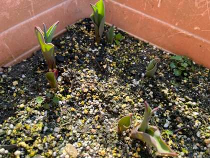 【チューリップの芽がでできました!!】
