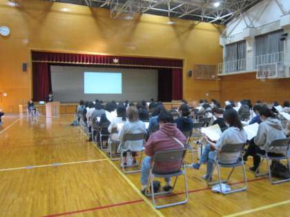 保護者対象の修学旅行説明会を実施しました。昨年度末の学年通信および本日の説明会でもお伝えしました通り、コロナ禍であり、今後の情勢がどのように変化していくかは定かではありません。万が一の日程変更や行先変更も十分可能性がある中で、本日は、現時点で本校として考えております修学旅行の内容を示させていただきました。お忙しい中、多数のご参加、本当にありがとうございました。本日、欠席された保護者の方には、11日(月)に本日の資料を配布させていただきますので、ご確認ください。加えて「修学旅行参加確認について」「修学旅行におけるアレルギー・健康調査のお願い」「健康保険証のコピー等の提出のお願い」の3点も11日(月)に配布させていただきます。よろしくお願いします。