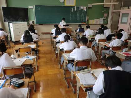数年ぶりの日曜参観が実施されました。1組は理科と社会,2組は体育と数学,3組は国語と英語でしたが,どのクラスも普段とは違う雰囲気だったような・・・みんな,緊張してたかな?でも,そんな中でよく頑張ってくれていました。