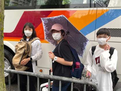 少しずつ生徒が集まってきました。生徒も教師も気持ちの昂りを隠すことができません。7時に出発します。