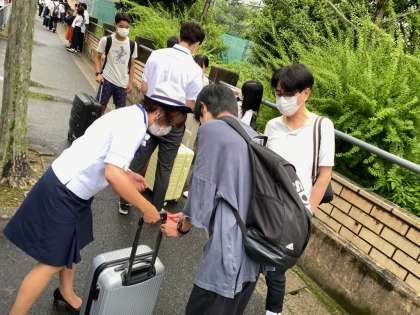 揃ったクラスも出てきました。まもなく出発します。すごく蒸し暑いですが、雨は降っていません。