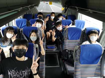 草津JCTから新名神高速道路に入っています。今のところ順調に快走しています。2組のバス内の写真が届きました。