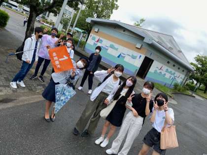 名古屋港水族館に到着しました。心配していた渋滞も少しでしたので、余裕を持って到着できました。これから名古屋港水族館に入る前にクラス写真を撮る予定です。