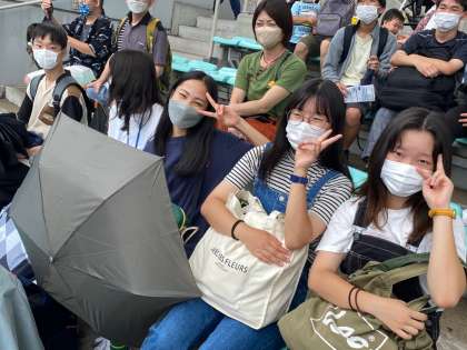 いよいよイルカパフォーマンス!3000人収容の大スタジアム。楽しみです!