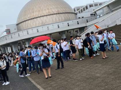 名古屋港水族館における活動を終了し、バスに乗りました。新東名高速道路の車両火災、東名高速道路の横転事故により、山梨県への高速道路が2本通行止めになっています。やむを得ず中央道を大きく迂回し、山梨県に入ります。予定より1時間ほどオーバーしての到着を予定しています