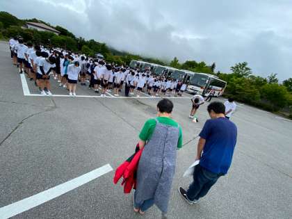 無事に1日遅れの入村式を終え、体験活動に向かいます。山中湖と河口湖、2箇所での体験です。少し緊張気味に出発していきました。