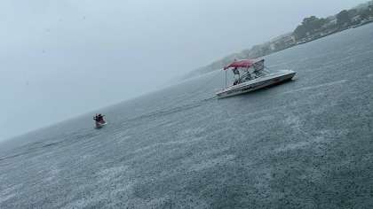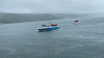 バナナボート体験です。なかなかのスピードで走っています。風が少し冷たかったようですが、本当に楽しかったようです。またやりたいとの声がたくさん聞かれました。