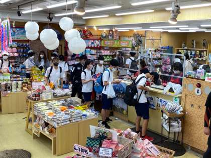 みはらし亭での昼食を終えた後、おみやげ購入です。昨日の名古屋港水族館のおみやげとはまた違うおみやげが勢揃い。一生懸命選んでいました。