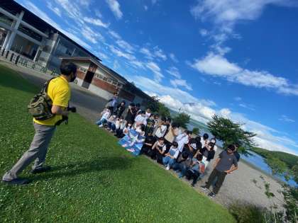 退村式を行いました。式の前には富士山をバックにクラス写真、学年写真を撮ることもできました。修学旅行実行委員よりお礼の言葉を述べ、ペンションのオーナーさんとお別れをしました。本当に3日間お世話になりました。ありがとうございました。