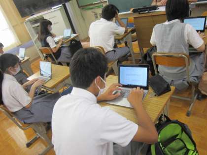 修学旅行から帰ってきて、通常通りの学校生活のスタートです。まず最初に、振り返りアンケートをFormsで行いました。みなさんには、今後、成功体験を積み、自信をつけていってほしいと思います。これから先、成功体験を積める人へとしっかり成長していく(変わっていく)ためにも、この修学旅行のことを忘れてはいけません。よって、記憶が新しいうちにしっかりと振り返ります。時より、しおりの日誌やスクラムガイドブックも見ながら、頑張って解答していました。振り返りアンケートの結果は、どこかでシェアしたいと思います。