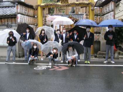 今年度より始まったたてわり活動。7月に予定されていた校外学習がやっと実施できました。京都市内の寺社・仏閣を「指令書」をもとに回るというものです。中には、難しい指令書もあり、結果としてたどり着けなかったグループもありました。それも大変意味のあることであり、これからの自分に活かすことができるでしょう。あいにくの雨でしたが、前向きな3年生の姿勢が1・2年生の後輩によい影響を与えていたように思います。修学旅行以来の校外での学習。お疲れ様でした。