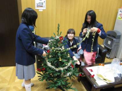 ツリーは、悪戯されることもなく、校舎に出入りする人の目を楽しませてくれています。