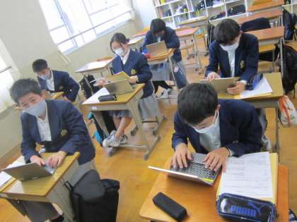 1人1テーマで行う3年生としての探究活動、いよいよ大詰めです。実際に探究活動を行うことはもちろんですが、「探究の大事さ」「探究の手順」等をしっかりとおさえるようにしています。現在、スライドづくりの真っ最中ですが、そのスライドを作るにあたり、どのような内容が充実すべきなのか、結果として、スライドの量はどう変わっていくのか等も考えてみました。たっぷりと時間がとれるわけではない中での探究ですが、一生懸命取り組んでいます。発表会はもうすぐです。