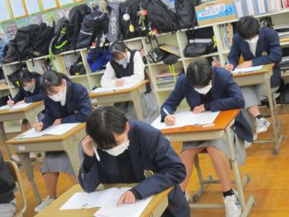 3年生第4回定期テストが終了しました。このテストをもって3年間の実技4教科の定期テストが終了となります。1週間の間に、多くて3回、少なくて1回という授業回数の中で、3年間、色々なことを学んできました。五感、いや六感をフルに使いながら1回1回の授業に取り組んできました。たくさんの成長を成し遂げた実技4教科。残念なことに、高等学校では多くが選択教科になります。もしかすると、テストどころか、音楽、美術、保健体育、技術、家庭の授業自体が最後になる人もいます。テストは終わりましたが、1回1回の授業を大事に取り組んでください。3年間の実技4教科のテスト、お疲れさまでした。