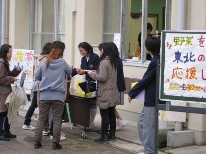 先日のクリーンキャンペーンの際、1年生が菜園で作った野菜を販売しました。その収益金を東日本大震災で被災された地域に贈るという企画でした。手紙のなかの大根とは、その日に販売されたものです。
