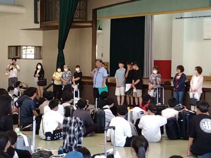 おはようございます。今日の沖縄は晴れ。気温は24度。気温は徐々に上がり、昼頃には29度までになる予報です。沖縄のきれいな空と海が目に浮かびます。修学旅行2日目の行程は各民家での体験活動と学年レクレーションです。今日も思い出がたくさん出来そうですね。写真は、昨日の入村式の様子と平和祈念公園での集合写真です。