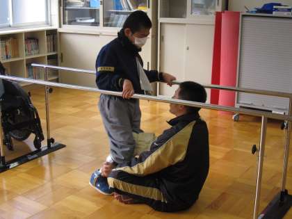 彼は目下、平行棒を使って歩行の練習を繰り返しています。というのも、彼の目標は卒業証書授与式で、自分の足で立って卒業証書を受け取ることだからです。