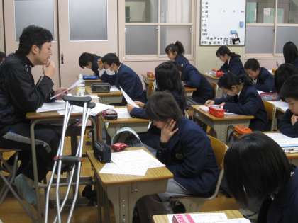 どのクラスでも、(4組は以前に行っていたようです。)配られると同時に“シーン!“となり、生徒の視線は紙面に釘づけになりました。