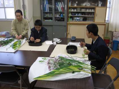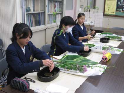 完成した生け花は、玄関の他、校長室や保健室の前などに飾られます。