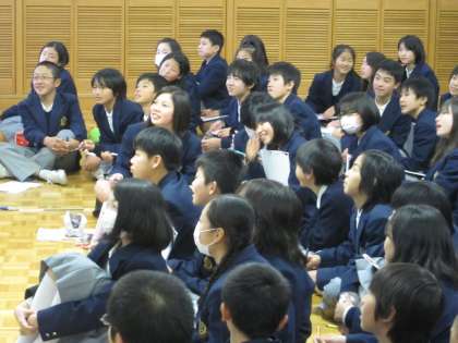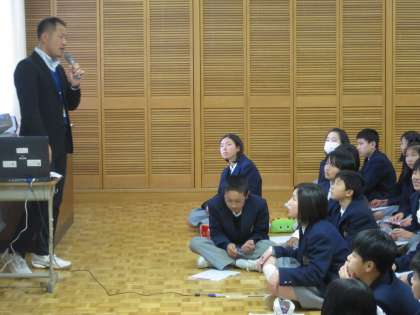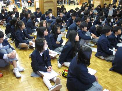先ずは、阿部先生の話しておられる様子と、真剣に聴く生徒の様子です。