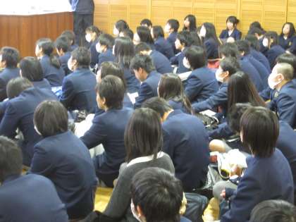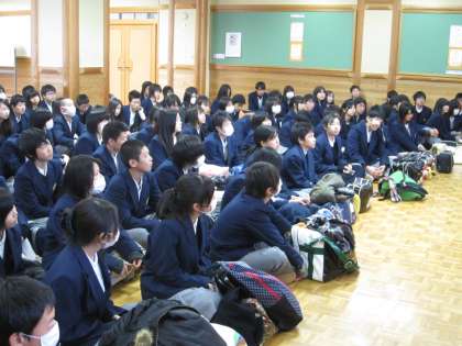 5時間目、明日の私立高校入学試験に向けて受験生の集会がもたれました。