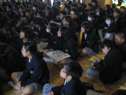 全体会では真剣に話を聞き、DVDを鑑賞し代表生徒がお礼の言葉を述べました。