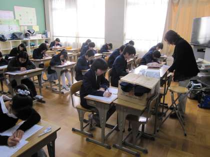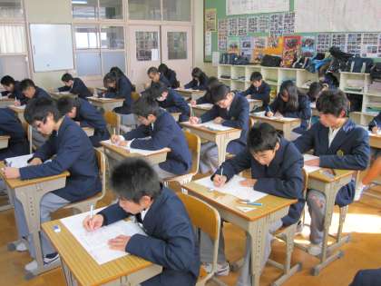 1・2年生と育成学級で学ぶ生徒たちはテストに取り組んでいます。