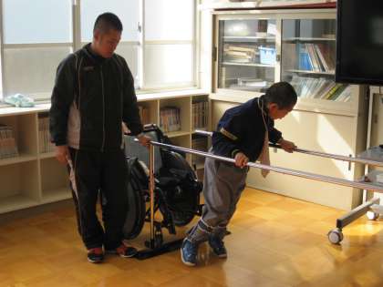 今日の筆記テストは1時間のみで、日課であるトレーニングの時間になっていました。卒業式に向けて「歩行トレーニング」が繰り返されています。