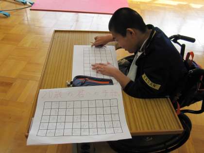 彼は、今年になるまでほとんど文字が書けませんでした。1年間取り組んできて、今では、こうした手紙や作文が書けるようになりました。