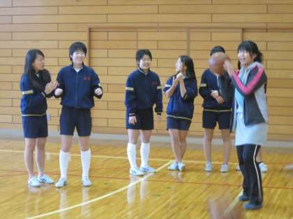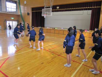 女子は体育館でバスケットボールです。