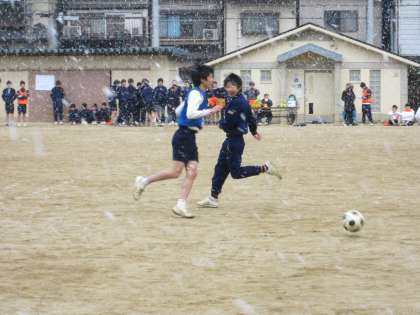 何年たっても「僕らの卒業前の球技大会の時、雪が降ってたなあ」と覚えていることでしょうね。